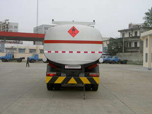 東風前四后八油罐車選裝駕駛室。運送介質品名:汽油;柴油。介質密度:700千克/立方米;850千克/立方米罐體有效容積為16.48立方米, 罐體外形尺寸 (長度×長軸×短軸)(mm):9100×2265×1195. |
