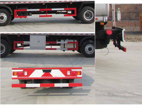 運(yùn)輸介質(zhì):汽油;類(lèi)項(xiàng)號(hào):3,密度:700千克/立方米;罐體有效容積:20.3立方米,罐體外形尺寸(長(zhǎng)×寬×高)(mm):8100×2360×1560。2,側(cè)防護(hù)左右對(duì)稱(chēng)采用冷彎型鋼/Q235,螺栓連接。后防護(hù)采用冷彎型鋼/Q235,焊接,截面高100mm,截面寬50mm,下邊緣離地高540mm。3,隨底盤(pán)選裝駕駛室;僅選用子午胎,限速裝置,輔助制動(dòng)裝置和前盤(pán)制動(dòng)器的底盤(pán);安裝具有衛(wèi)星定位功能的行駛記錄儀;ABS型號(hào)/生產(chǎn)廠(chǎng)家:VIE ABS-II/上海萬(wàn)捷汽車(chē)控制系統(tǒng)有限公司;僅用發(fā)動(dòng)機(jī)分別對(duì)應(yīng)的油耗值為:CA6DF4-24E4,BF6M1013-24E4,CA6DF4-22E4,BF6M2012-22E4,BF6M1013-26E4/37.09,36.84,37.04,36.95,36.95。 |