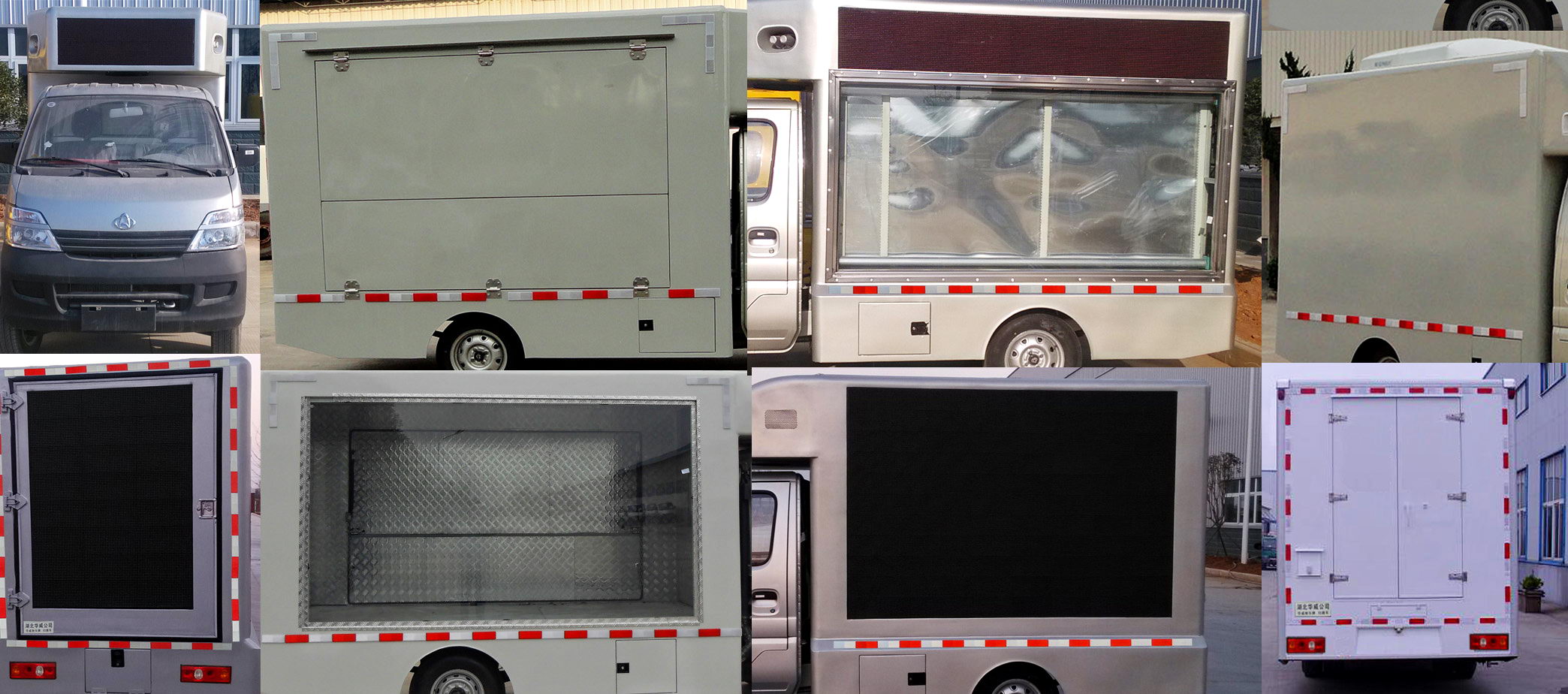 1.僅選擇2600mm軸距;2.車廂頂部封閉,不可開啟;3.廂內(nèi)內(nèi)部設(shè)備可根據(jù)用戶要求定制如發(fā)電機(jī)/冰柜/冷飲機(jī)/售貨臺/炊具等;4.發(fā)動機(jī)LJ474Q3E2最大凈功率為58kw,選裝玻璃鋼整體造型;選裝左右兩側(cè)不同結(jié)構(gòu)形式的側(cè)翻門/后門,選裝LED屏,選裝頂置空調(diào),導(dǎo)流罩,燈箱廣告. |