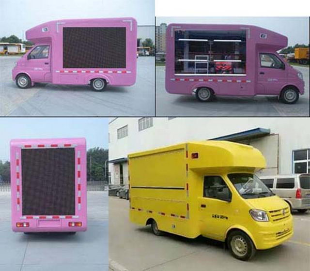 車身兩側(cè)與車身尾部可根據(jù)需求增加LED顯示屏,可根據(jù)需求選擇在車身兩側(cè)任意一面開啟售賣窗口;廂體下欄板在售貨作業(yè)時可展開平放以擴展貨臺面積. |