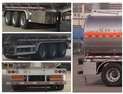 鵝頸式三橋鋁合金運油半掛車/油罐車從產品性能考慮,相比碳鋼、不銹鋼材質來說,鋁合金材料具有密度小、質量輕、強度高、彈性好、抗沖擊性能好、耐腐蝕、易表面著色、良好的加工成型性以及高回收再生性等特點,能滿足危化品容器材料使用要求,符合輕量化技術發展趨勢,同時,還不會生銹污染油品,保證油品品質,成為碳鋼、不銹鋼的理想替代材料。該車自重輕壹噸。