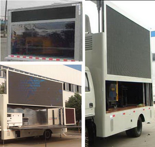 福田迦途國五LED宣傳車|廣告車|科普宣傳車標準配置包括:單側防水P5,P6彩屏,單側液壓舉升,智能字幕2-7副燈畫切換廣告燈箱,5cm合金鋼架箱體,木地板,地板膠,內外電配電箱,循環通風降溫系統,靜音柴油發電機組,控制系統電腦一臺,高級音響一對,功放一臺,控制臺一個。隨屏幕尺寸配置底盤。
