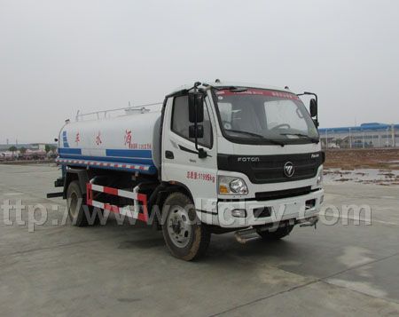 福田奧鈴8噸灑水車采用福田公司奧鈴環衛車專用二類底盤。配備灑水車、綠化噴灑車大功率專用灑水泵(威龍泵),帶消防接頭,帶自流閥,帶自吸功能,罐體材料采用優質碳鋼板,前沖后灑、側噴;高位側花灑(10方以上標配);后帶工作平臺,綠化灑水高炮,有效容積7.35方。