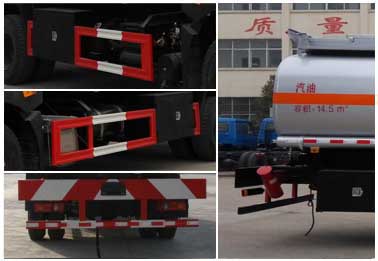 罐體有效容積:14.5立方米,介質:汽油,類項號:3,密度:700千克/立方米,罐體外形尺寸(長×長軸×短軸)(mm):5800×2320×1550.隨底盤選裝駕駛室,排氣管前置,安裝具有衛星定位功能的行駛記錄儀,安裝前輪盤式制動器,僅采用底盤子午線輪胎以及限速裝置,限速80km/h.ABS型號:3631010-C2000;生產廠家:東科克諾爾商用車制動系統(十堰)有限公司,發動機為YC6J180-50,YC4EG160-50,ISD185 50,ISB190 50,ISB170 50,YC4E160-56,YC6JA180-50,CY4SK151,ISD210 50,CA4DLD-15E5,對應油耗申報值為24.3.側防后防采用Q235材質焊接在大梁上.后防護斷面尺寸(mm):50×100.后防離地高為450mm. |