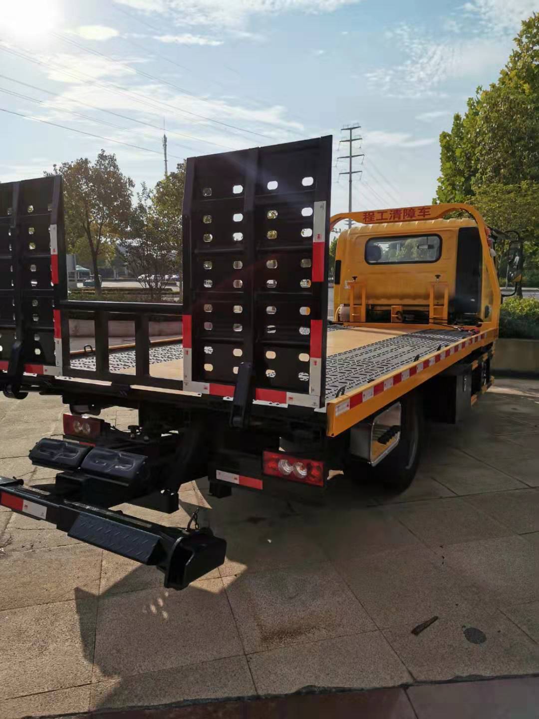福田奧鈴速運藍(lán)牌一拖二平板道路清障車選裝配置:進(jìn)口或國產(chǎn)液壓系統(tǒng);選裝隨車吊機等。選裝后翻板或升縮板。清障車警示燈分為工程黃(民用)和紅藍(lán)(警用)兩種顏色,我國規(guī)定安裝紅藍(lán)警燈要在當(dāng)?shù)赜嘘P(guān)部門申請警燈使用證及辦理相關(guān)手續(xù)。