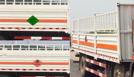 該車為危險品貨物運輸車,運輸具有獨立容器包裝的易燃氣體:液化石油氣、壓縮天然氣、乙炔、乙烷、乙胺、丁烷、丁烯、甲烷、炳烷、丙烯、二甲醚、打火機或打火機加油器、壓縮氫,運送危險品類項號為2.1;運輸具有獨立容器包裝的非易燃無毒氣體:液化氣體(非易燃、充有氮、二氧化碳或空氣)、壓縮氧(氮、空氣、氦、氬、氖)、二氧化碳;運送危險品類項號為2.2;選裝貨箱側板、后門結構;選裝前面罩;選裝箱體結構.側防護:材質Q235,螺栓連接;后下防護:材質Q235,螺栓連接,斷面尺寸120X60mm,離地高度540mm;安裝具有衛星定位功能的行駛記錄儀.裝有ABS,ABS型號:3631010-C2000,生產廠家:東科克諾爾商用車制動系統(十堰)有限公司.選裝前霧燈,駕駛室頂部裝飾燈為選裝件.僅選用前盤式制動器,前置排氣管,子午線輪胎,限速裝置的底盤,限速80km/h. |