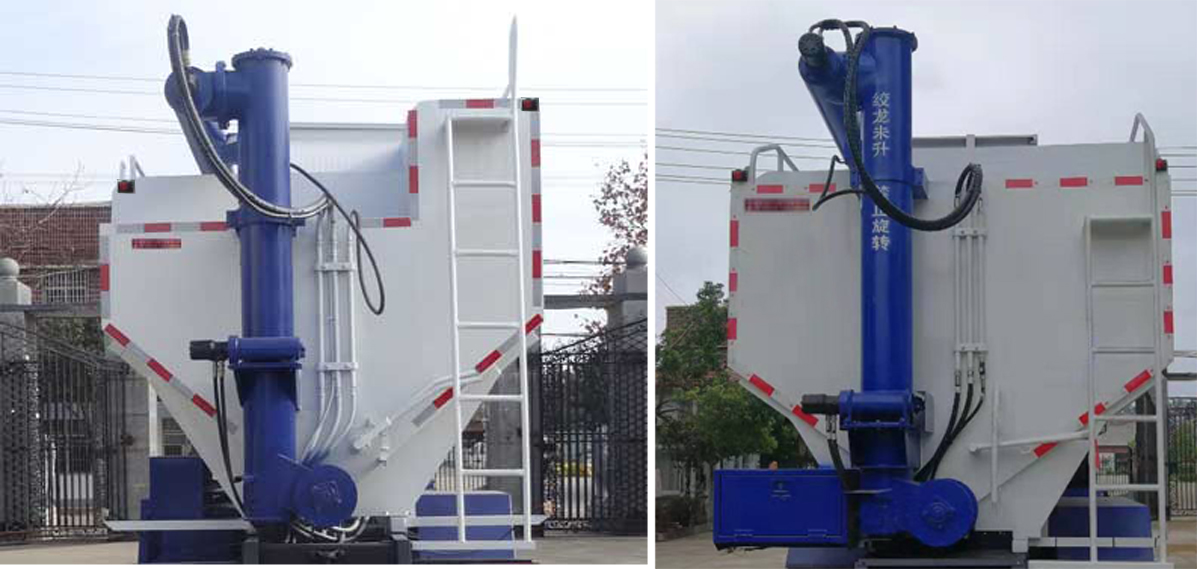 東風(fēng)天龍前四后八40方散裝飼料運輸車選裝配置:遙控操作蛟龍舉升或旋轉(zhuǎn);車載發(fā)電機;液壓蛟龍。