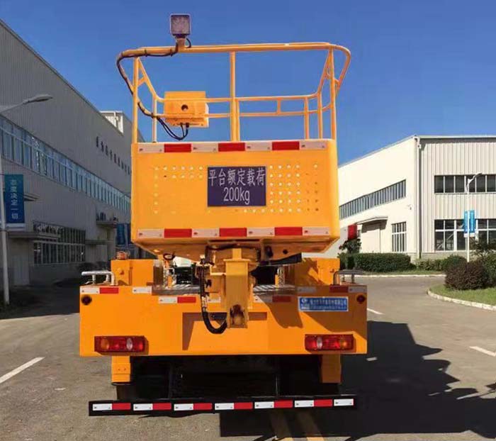 江鈴順達藍牌17米21米直臂式國六高空作業車采用江鈴順達國六底盤,江鈴115馬力,單排駕駛室,帶方向助力,帶排氣制動,ABS, 四節四邊形伸縮臂,,最大作業半徑:10m-11m,最大作業高度:17.5m和.22米 最大作業高度時的作業半徑為4.5米和5米, 360°回轉。支腿跨距:縱向(mm) X橫向(mm):4070X3700。吊藍額定載荷≤200㎏。吊藍尺寸:1100X650X1150,靜液調平,帶油缸鎖止功能,轉臺和吊藍雙位操作,帶應急動力單元。電控液壓操作,前V后H四支腿全部水平伸出,平衡拉桿全部為實心,全比例系統,總線控制,無線遙控,吊藍有線操作,轉臺加裝座椅,整車三路操作。