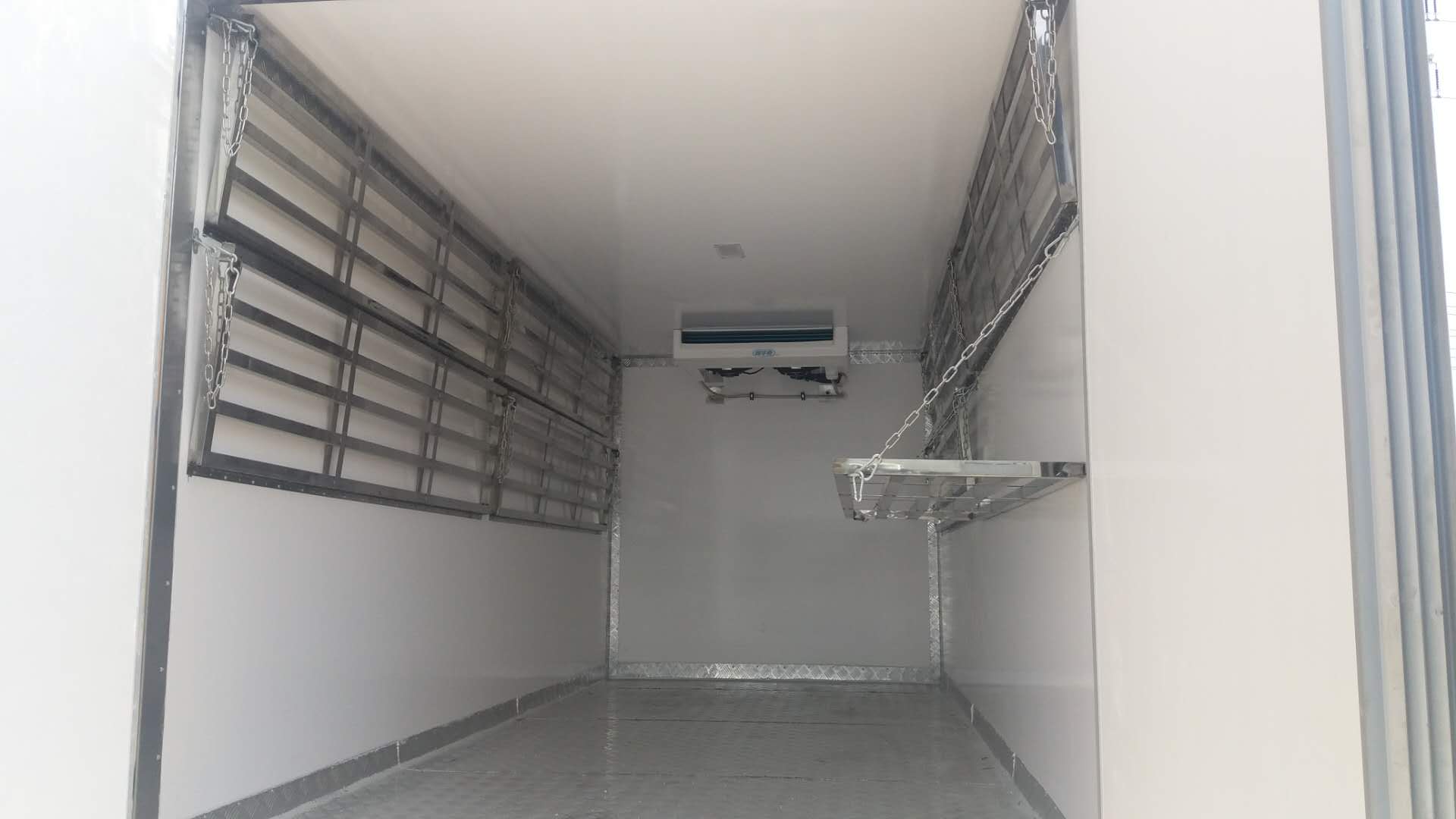 福田歐曼前四后八9.6米國六冷藏車常用于冷凍食品(冷凍車)運輸車,奶制品(鮮奶運輸車)、蔬菜水果(保溫車)、疫苗藥品(疫苗運輸車)、活魚活蝦活蟹及冷鮮肉類產品運輸車等各類需要恒溫,冷藏,冷凍物品的運輸配送。疫苗藥品冷藏車和普通冷藏車相比必須符合醫用GSP認證:1.內飾前板安裝100MM高通風槽,2.內飾側板安裝50MM高通風槽,3.內飾底板55MM高鋁導軌。
