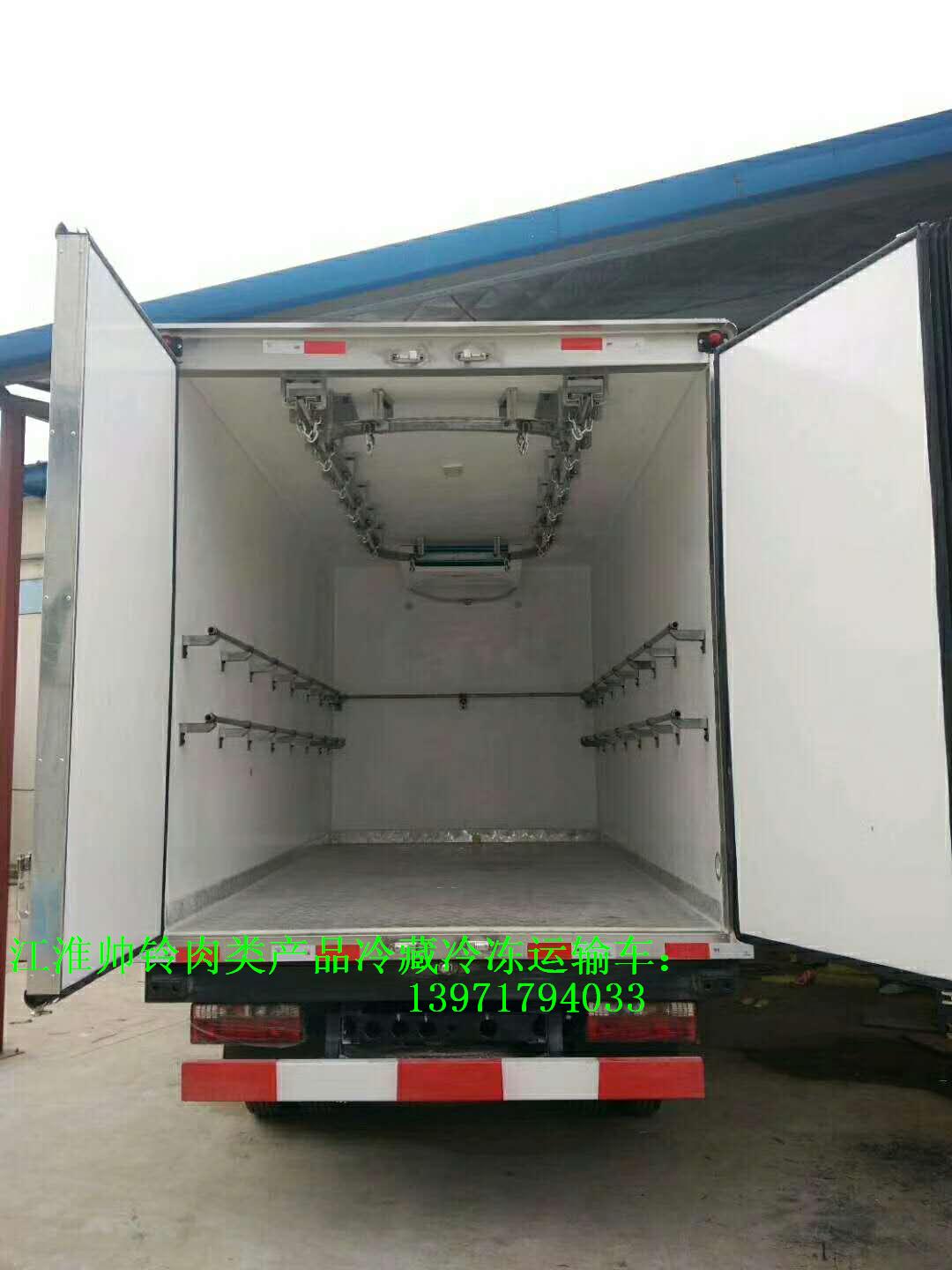 江淮帥鈴肉類產品冷凍冷藏車|蔬菜運輸車|食品運輸車采用江淮公司二類底盤,寬體駕駛室,7.00-16 8PR鋼絲輪胎,LC6T450變速箱,空調.動力轉向,MP3,框架式倒車鏡,多功能方向盤,ABS,盤式制動等。搭載江淮156馬力,濰柴130馬力或康明斯143國五發動機,有燃油和環保公告,上牌無憂。 江淮帥鈴肉類產品藍牌冷凍冷藏車標準配置:國內知名廠商生產的玻璃鋼、彩鋼廂板,各板塊間用高強度結構膠粘接,配以鋁合金型材鉚接成整體,中間8CM聚氨脂泡沫保溫,箱體內頂部安裝LED頂燈,肉鉤、通風槽,通風隔板,頂部導軌滑道,安裝排水孔。廂頂封閉,制冷效果更顯著。門鉸鏈及栓桿等可選用不銹鋼和鍍鋅件兩種。 江淮帥鈴肉類產品藍牌冷凍冷藏車選裝配置:箱體內外材料:玻璃鋼,彩鋼,鋁合金,不銹鋼;用戶還可以選裝聚氨脂泡沫厚度:5CM,8CM,10CM,12CM;溫度記錄儀:隨車打印,高低溫報警,GPS定位;選裝側開門:單側門,雙側門;制冷機組根據用戶要求選裝-18度至0度國產機組或進口機組(獨立或非獨立,一體機組)。 江淮帥鈴肉類產品藍牌冷凍冷藏車可用做冷藏,冷凍食品,飲料,藥品,疫苗,醫療廢品等各類需要恒溫,冷藏,冷凍物品的運輸配送。藥品冷藏車和普通冷藏車相比必須符合醫用GSP認證:1.內飾前板安裝100MM高通風槽,2.內飾側板安裝50MM高通風槽,3.內飾底板55MM高鋁導軌。價格實惠,歡迎來電洽談.