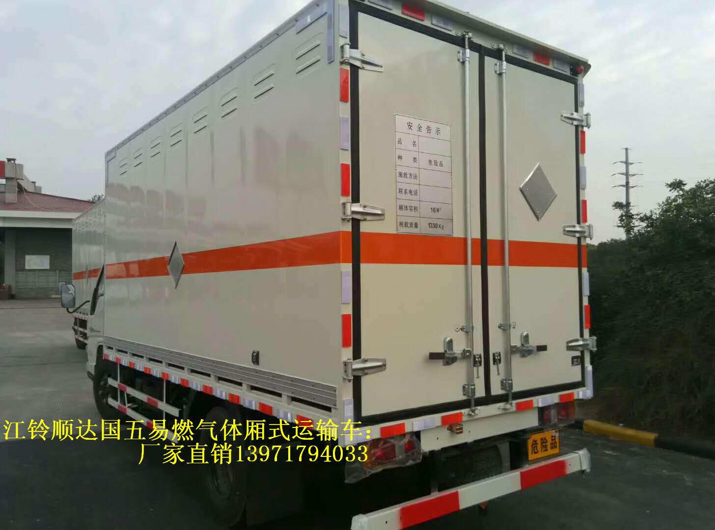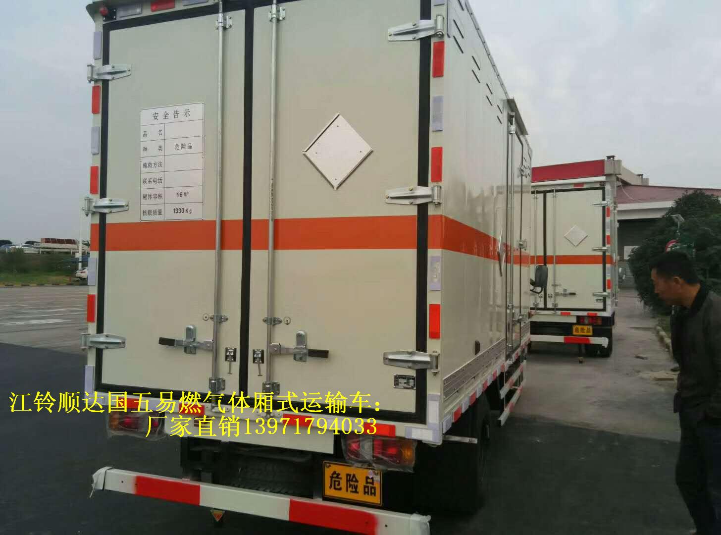 爆破器材運(yùn)輸車又名炸藥運(yùn)輸車、雷管運(yùn)輸車、鞭炮運(yùn)輸車、防爆車、民爆車、煙花爆竹運(yùn)輸車,易燃?xì)怏w廂式運(yùn)輸車,易燃液體廂式運(yùn)輸車,鋼瓶運(yùn)輸車,液化氣鋼瓶運(yùn)輸車,液化氣瓶運(yùn)輸車,易燃?xì)怏w運(yùn)輸車,易燃?xì)怏w廂式運(yùn)輸車,氧氣瓶運(yùn)輸車、氮?dú)馄窟\(yùn)輸車,二氧化碳?xì)馄窟\(yùn)輸車等等。最新江鈴順達(dá)國五易燃?xì)怏w廂式運(yùn)輸車價(jià)格圖片廠家直銷,歡迎來電咨詢:13971794033。