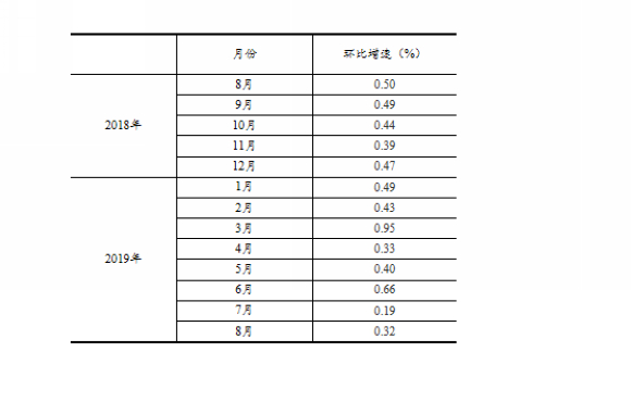 7、環比數據修訂:根據季節調整模型自動修正結果,對2018年8月至2019年7月份規模以上工業增加值環比增速進行修訂。修訂結果及2019年8月份環比數據如下: