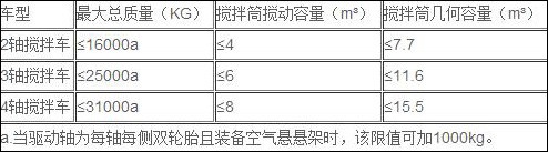 (1)混凝土攪拌運輸車應符合下表規定: